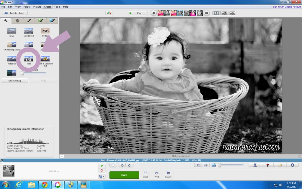 Picasa Tutorial, select text February 4, 2013 Rachael Image posted in: Add Text to Pictures to Create a Milestone Picture for Baby or Child Image available in: 1440x900 / 150x150 / 300x187 / 768x480 / 1024x640 / 1440x900 / 1440x900 / 600x375 / 820x513 ← Previous Next →