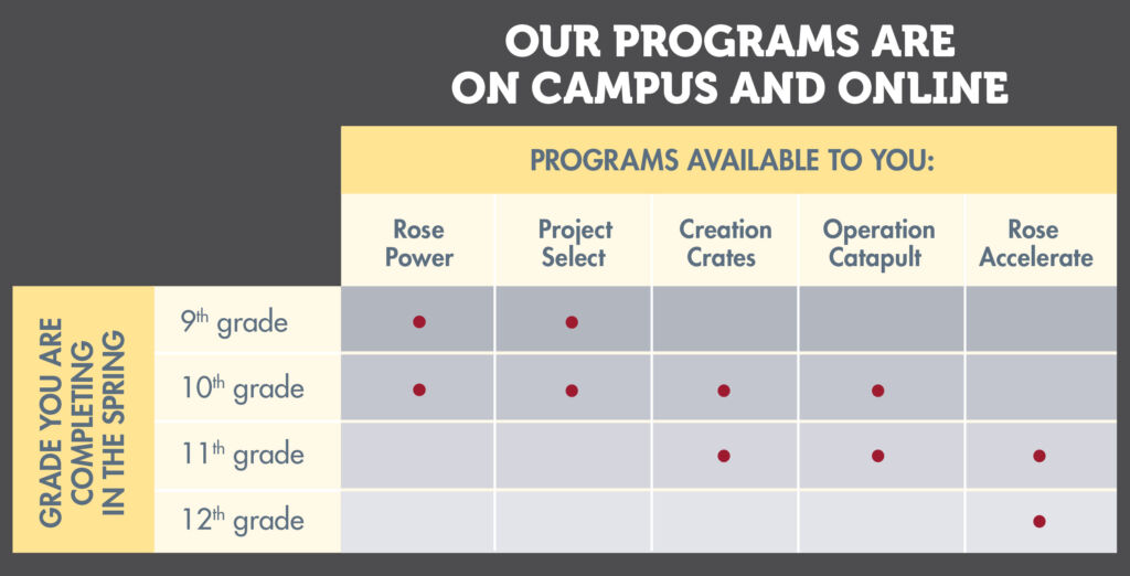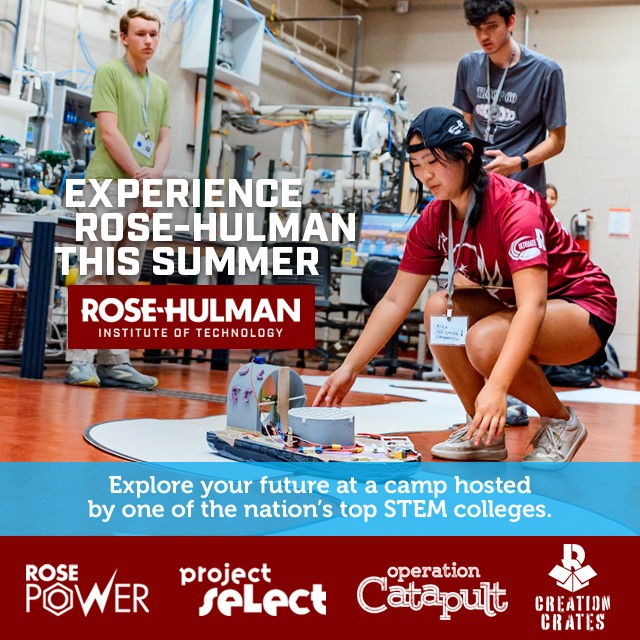 Qualified applicants from Vigo County high schools can attend Operation Catapult, Project SELECT, and Rose Power with our partners at Rose-Hulman Institute of Technology at no cost!