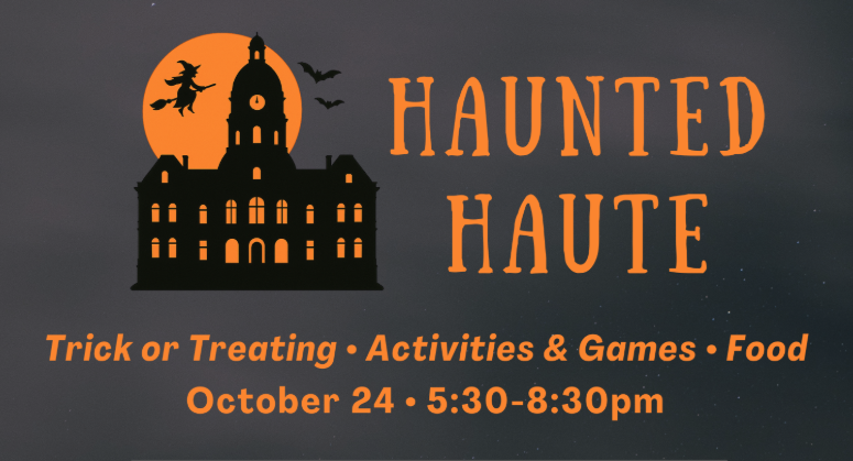 Friday, October 24. Haunted Haute in Downtown Terre Haute. Trick or treating, games, food, fun. Costumes encouraged! Bring your own treat bag!