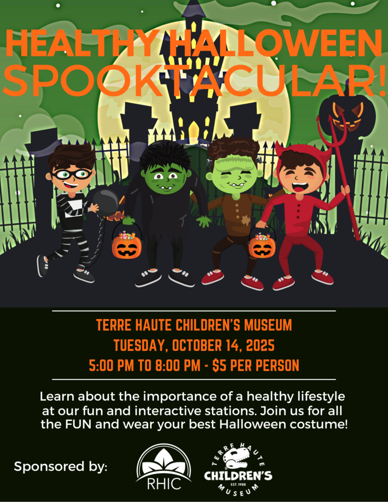 Tuesday, October 14. Healthy Halloween Spooktacular at the Terre Haute Children’s Museum. $5 per person.