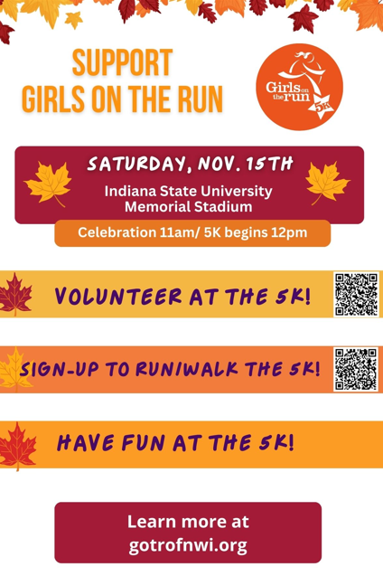 Save the date! Girls on the Run wants you to join them as a volunteer or participant (you can walk or run!) for their 5k event on November 15! This event is open to everyone in our community! Register to volunteer or race HERE!