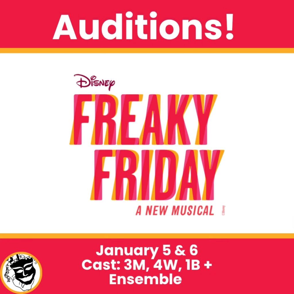 January 5 and 6 at 7pm. Auditions for Community Theatre’s first show of 2026, and this season’s musical, Freaky Friday!